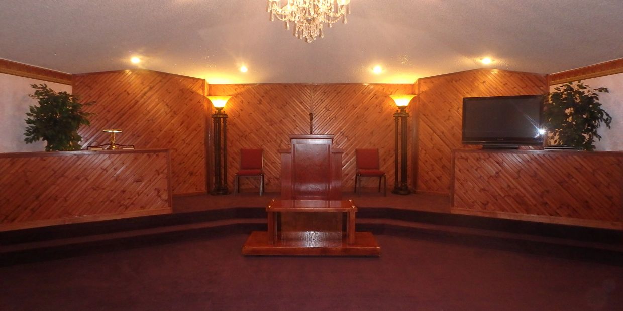 An elegant and spacious chapel that can accommodate up to 175 people, with comfortable pew seating, and media capabilities for your family's needs.